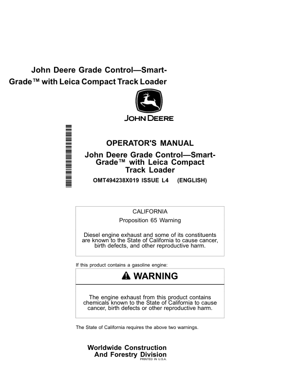 John Deere 333 P, 335 P Compact Track Loaders Operator’s Manuals (OMT494238X019)